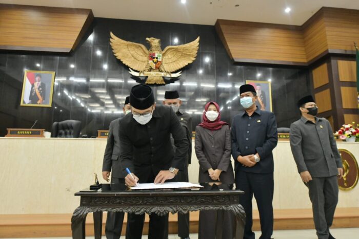 KAPOL.ID – Persetujuan usulan tiga Calon Daerah Persiapan Otonomi Baru (CDPOB) dalam rapat paripurna DPRD Jabar di Gedung DPRD Jabar, Kota Bandung, Kamis (28/4/2022) ditandatangani Gubernur Jawa Barat Ridwan Kamil dan Ketua DPRD Jabar.
