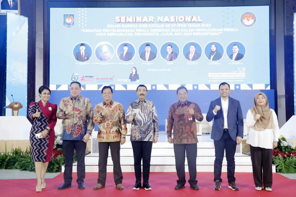 Rektor IPDN Dr. Drs. Hadi Prabowo, M.M mengatakan bahwa penyelenggaraan seminar nasional tersebut mampu menyatukan persepsi dan meningkatkan sinergitas penyelenggaraan pemilu.