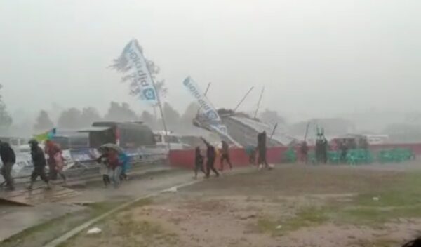 KAPOL.ID–Penonton final Piala Soeratin U-15 panik. Tenda yang menaungi mereka terbang. Hujan lebat disertai angin kencang melanda Sarana Olahraga (SOR) Kaliki, Desa-Kecamatan Mangunreja, Kabupaten Tasikmalaya, Rabu (2/2/2022).