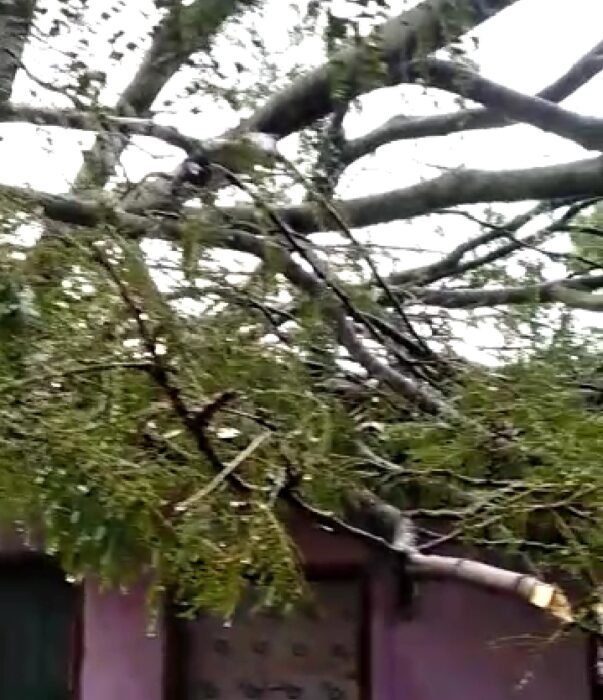 Ia mengatakan tercatat ada 6 unit rumah warga yang tertimpa pohon besar.