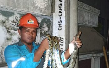 KAPOL.ID — Warga Kampung Cibitung, Desa Sukarapih, Kecamatan Sukarame, Kabupaten Tasikmalaya geger dengan kemunculan seekor ular di sebuah kandang ayam.