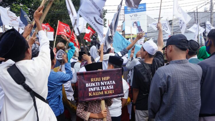 Menentang pembahasan Rancangan Undang-Undang Haluan Ideologi Pancasila (RUU HIP), ribuan umat muslim gabungan Kota dan Kabupaten Tasikmalaya padati akses jalan pusat kota.