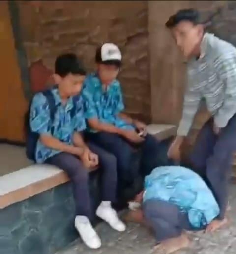 Dalam video berdurasi 38 detik itu, tampak beberapa siswa SMP disuruh oleh seseorang yang merekam video untuk mulai bersujud kepada pelajar lain yang ada di depannya.