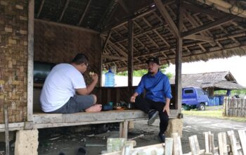 Didampingi Muspika Kecamatan Cibalong Deni melihat lokasi permukiman warga yang ancur akibat gerakan tanah yang terjadi pada Selasa (9/2/2021) lalu.