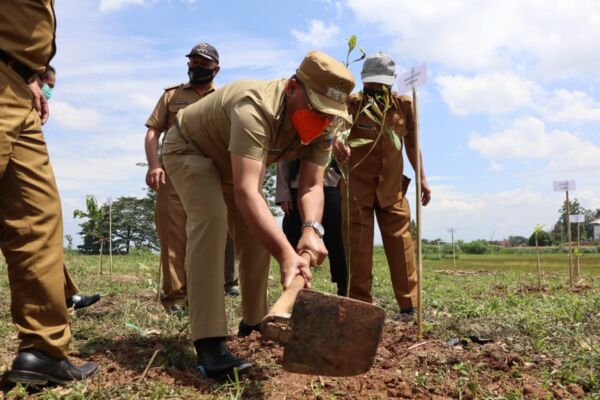 Penanaman dipimpin oleh Wakil Bupati Sumedang Erwan Setiawan didampingi Camat Jatinangor Herry Dewantara beserta unsur Forkopimka dan Sekretaris Dinas Lingkungan Hidup dan Kehutanan (DLHK) kabupaten Sumedang Wasman.