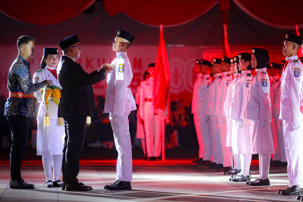 KAPOL.ID — Wali Kota Bandung, Muhammad Farhan, mengukuhkan 100 anggota Pasukan Pengibar Bendera Pusaka (Paskibraka) Kota Bandung Tahun 2025 di Plaza Balai Kota, Jumat, 15 Agustus 2025.