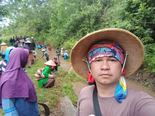 Warga Kampung Cikatulampa, Desa Padawaras Kec. Cipatujah, Kab. Tasikmalaya, gotongroyong membersihkan saluran primer irigasi Padawaras.