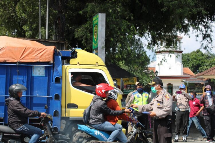 KAPOL.ID – 750 Alat Pelindung Diri (APD) berupa masker, dibagikan kepada masyarakat khusus para pengguna jalan dan yang ada di terminal Cimalaka.