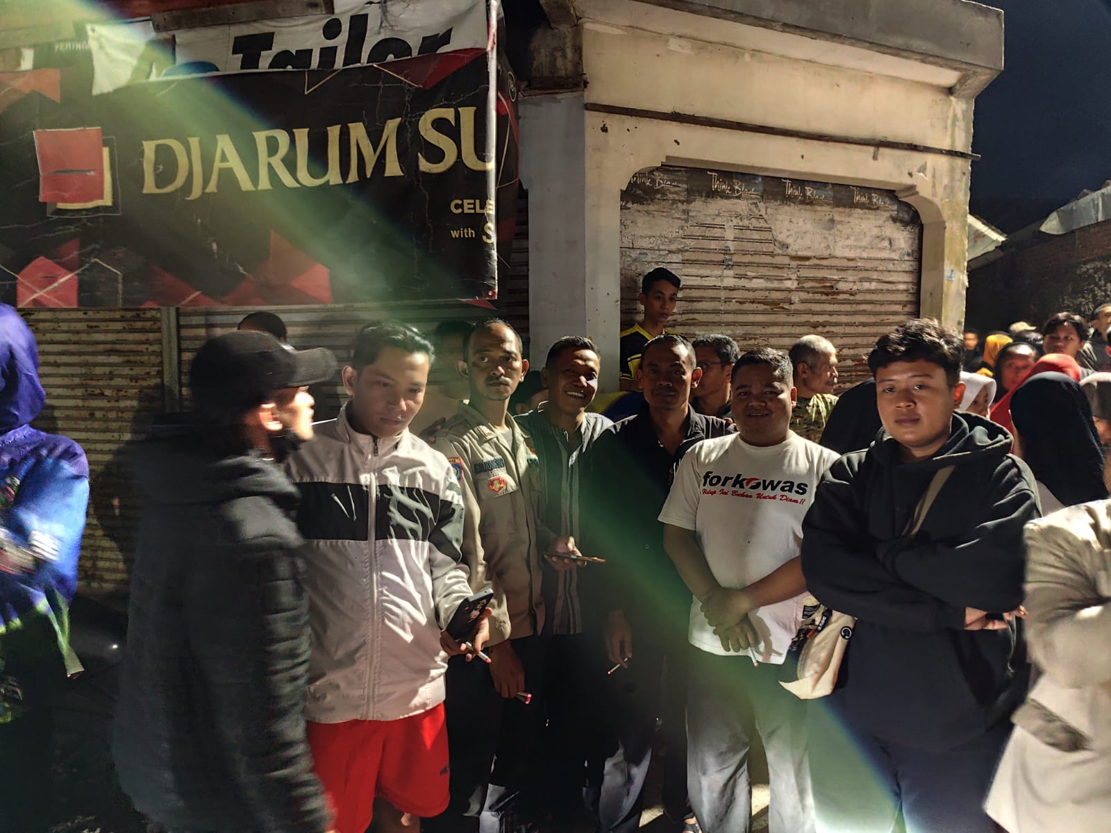 Pada pukul 20.00 WIB, masyarakat ramai-ramai berkumpul di depan TKP bersama jajaran pemerintahan, Bhabinkamtibmas dan Babinsa yang langsung mengecek ruko dan kosan.