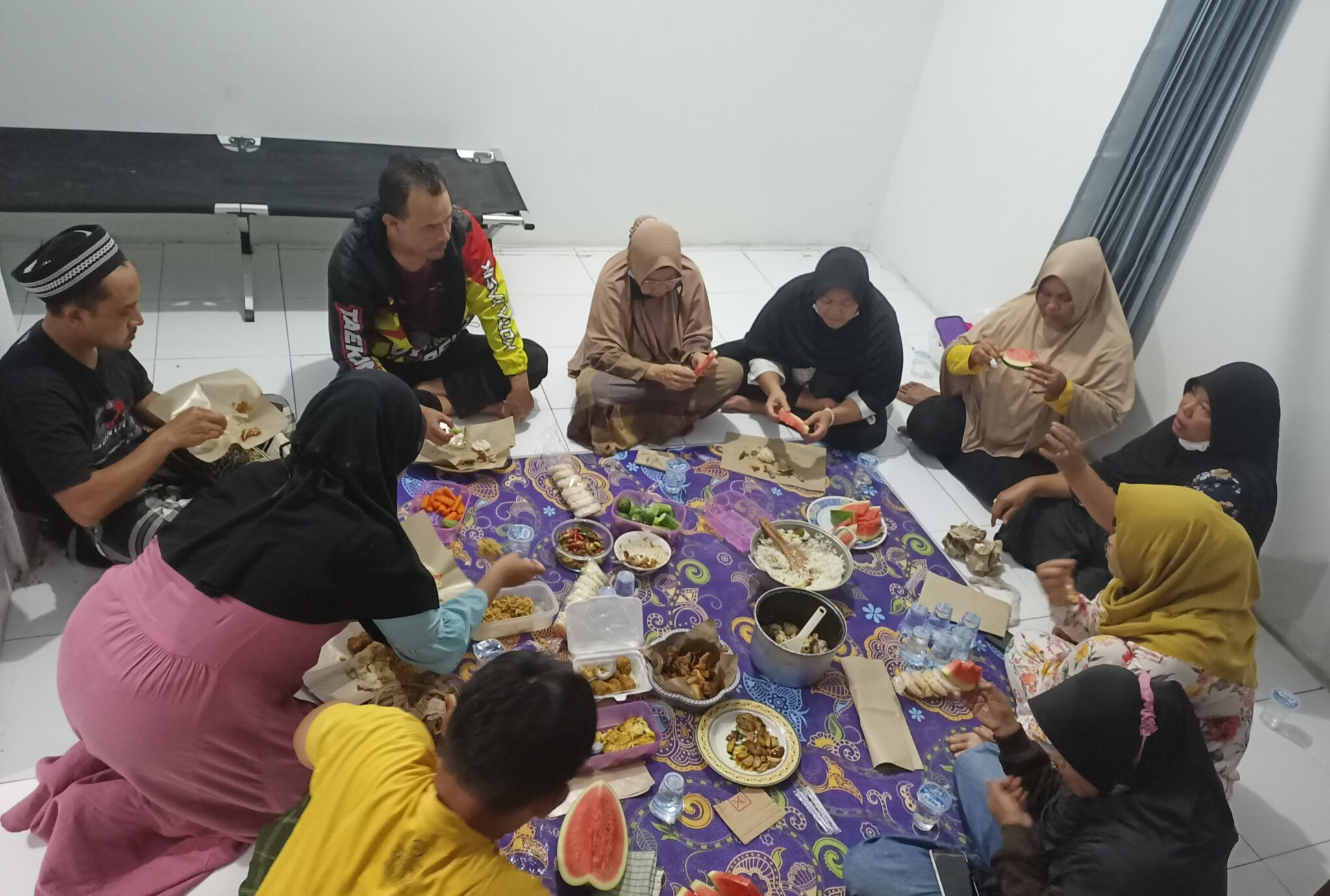 Satgas Covid-19 RW 15 Kelurahan Sukanagara Kecamatan Purbaratu Kota Tasikmalaya syukuran dengan botram saat mendengar ‘zero’ kasus aktif positif Covid-19, Rabu (3/11/2021).