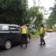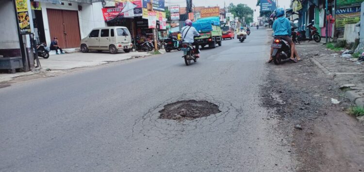 Seorang pengendara melintas di sekitar jalan yang berlubang tepatnya Jalan Ir. soekarno-Jatinangor, Desa Cikeruh, Kab. Sumedang, membahayakan pengendara, Selasa (12/5/2020).