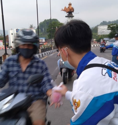 KAPOL.ID – Pengurus dan anggota XTC Sumedang membagikan takjil puasa dan masker ke pengendara di Bundaran Binokasih, Kota Sumedang, Minggu (1/5/2021).