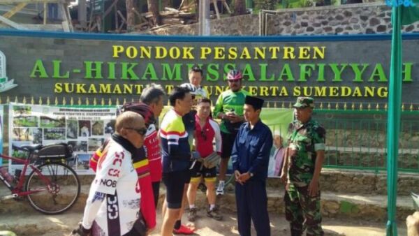 SUMEDANG, (KAPOL).- Ketua Yayasan Tampomas Sumedang, Rudy (Ooy) beserta para anggota dan sekretarisnya Renaldy (Pepey), beriringan bersepeda dari Sumedang Kota ke Pesantren Al Hikamussalafiyyah di Sukamantri Tanjungkerta.